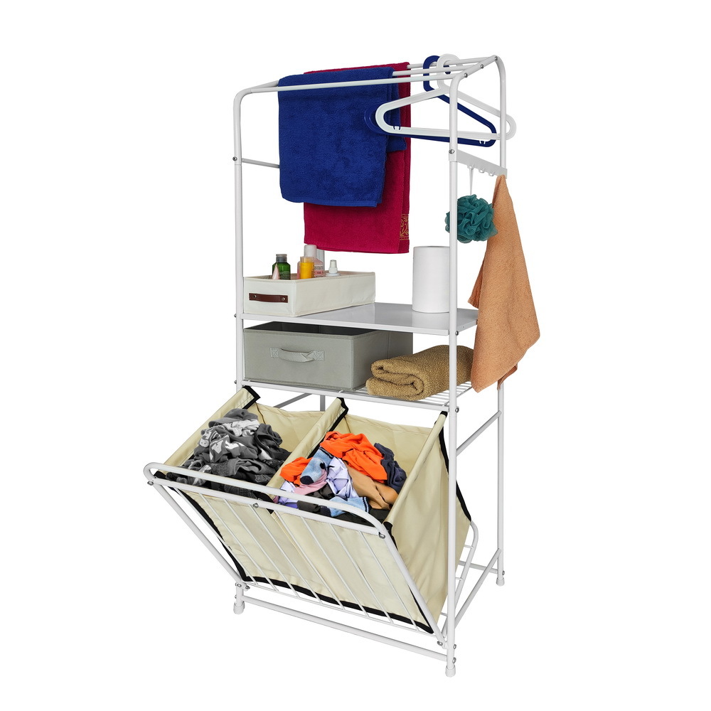 Стеллаж с двойной корзиной для белья и перекладиной 2-х ярусный арт.СКП11